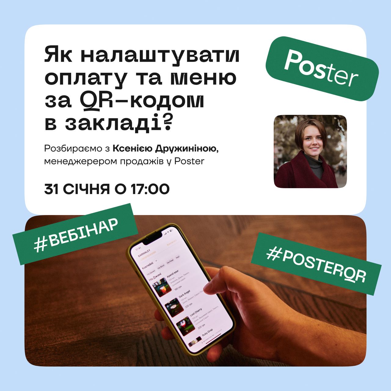 31 січня о 17:00 проведемо безплатний вебінар, на якому поговоримо про можливості Poster QR. Покажемо, як саме QR-коди працюють для гостя в закладі та розкажемо, яку користь з цього отримує бізнес.
