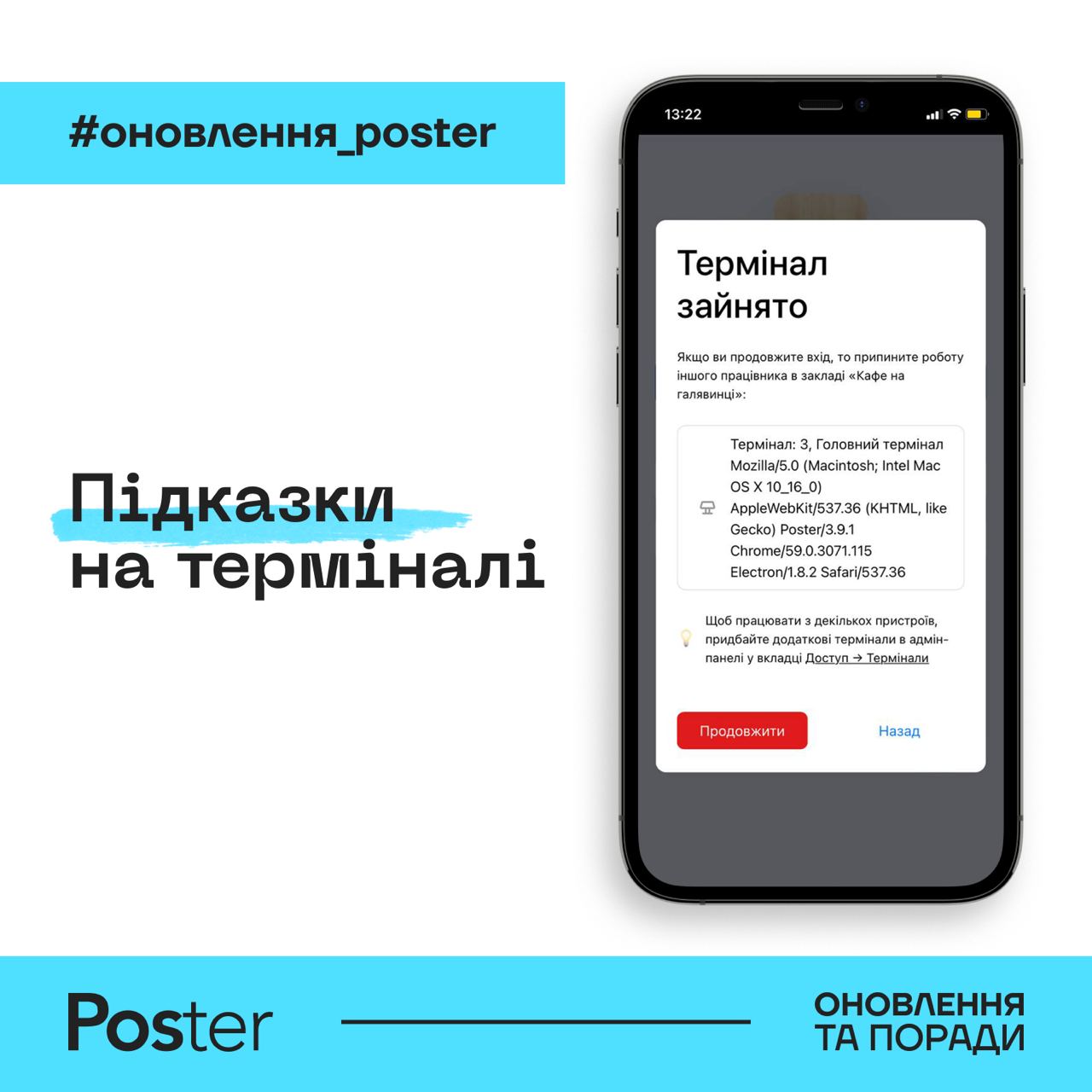 ☝️ В Poster можна одночасно працювати на терміналі лише з одного пристрою. Щоб приймали замовлення з декількох пристроїв, придбайте додаткові термінали.