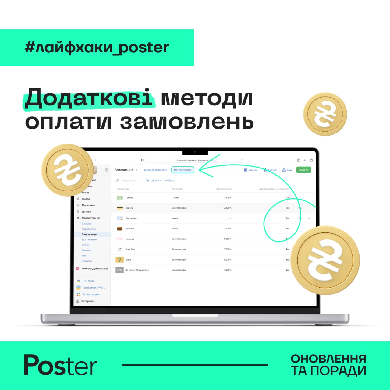 💰 Якщо ви приймаєте оплату не лише по банківському терміналу, а і переказом на карту — створіть окремий метод оплати. В кінці дня зможете зручно звести касу склавши звіт.