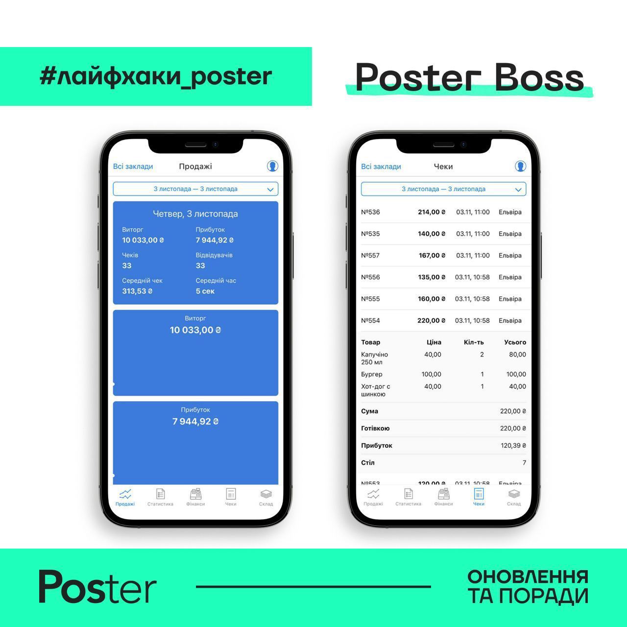Хочемо нагадати, що в нас є безкоштовний застосунок Poster Boss. В ньому можна переглядати аналітику закладу та стежити за залишками на складі. І все це у вашому телефоні 🔥