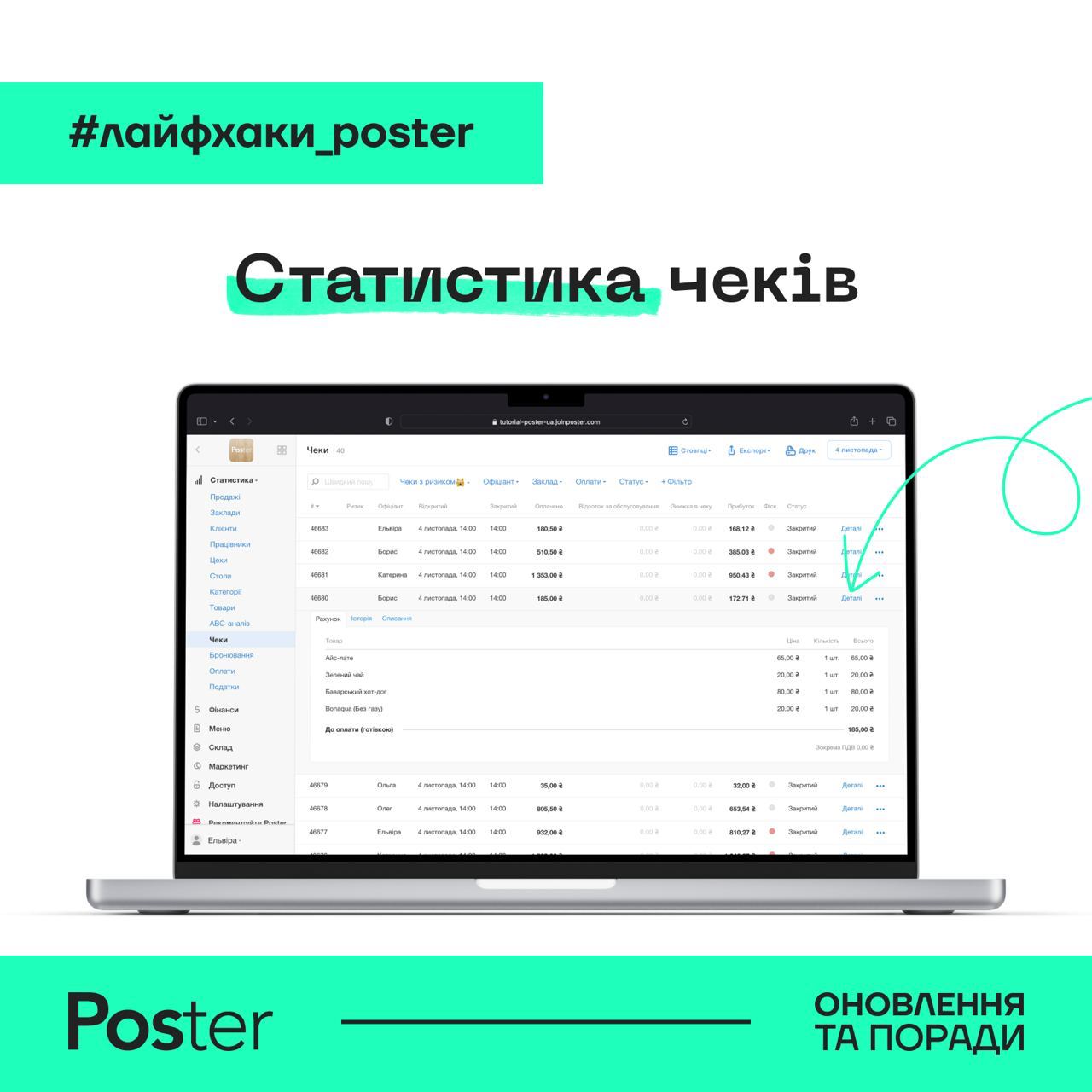 🤔 А ви знали, що у вкладці Статистика → Чеки можна подивитись не тільки загальну інформацію, а й деталізацію по кожному чеку?
