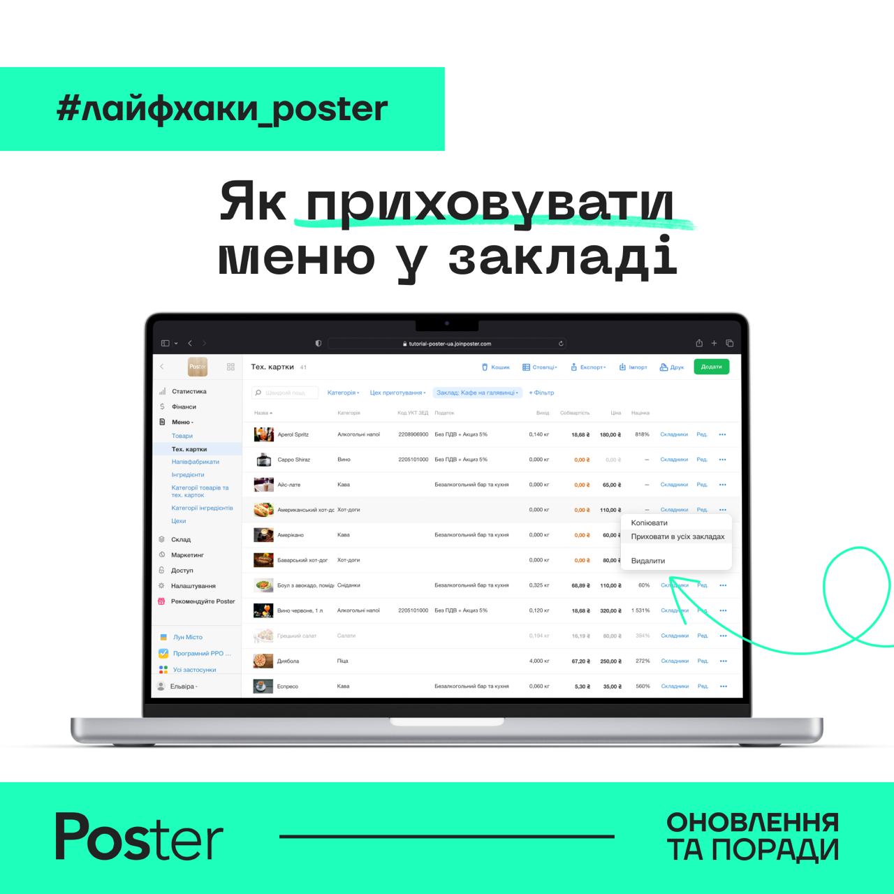 🍔 Як працювати з меню в Poster