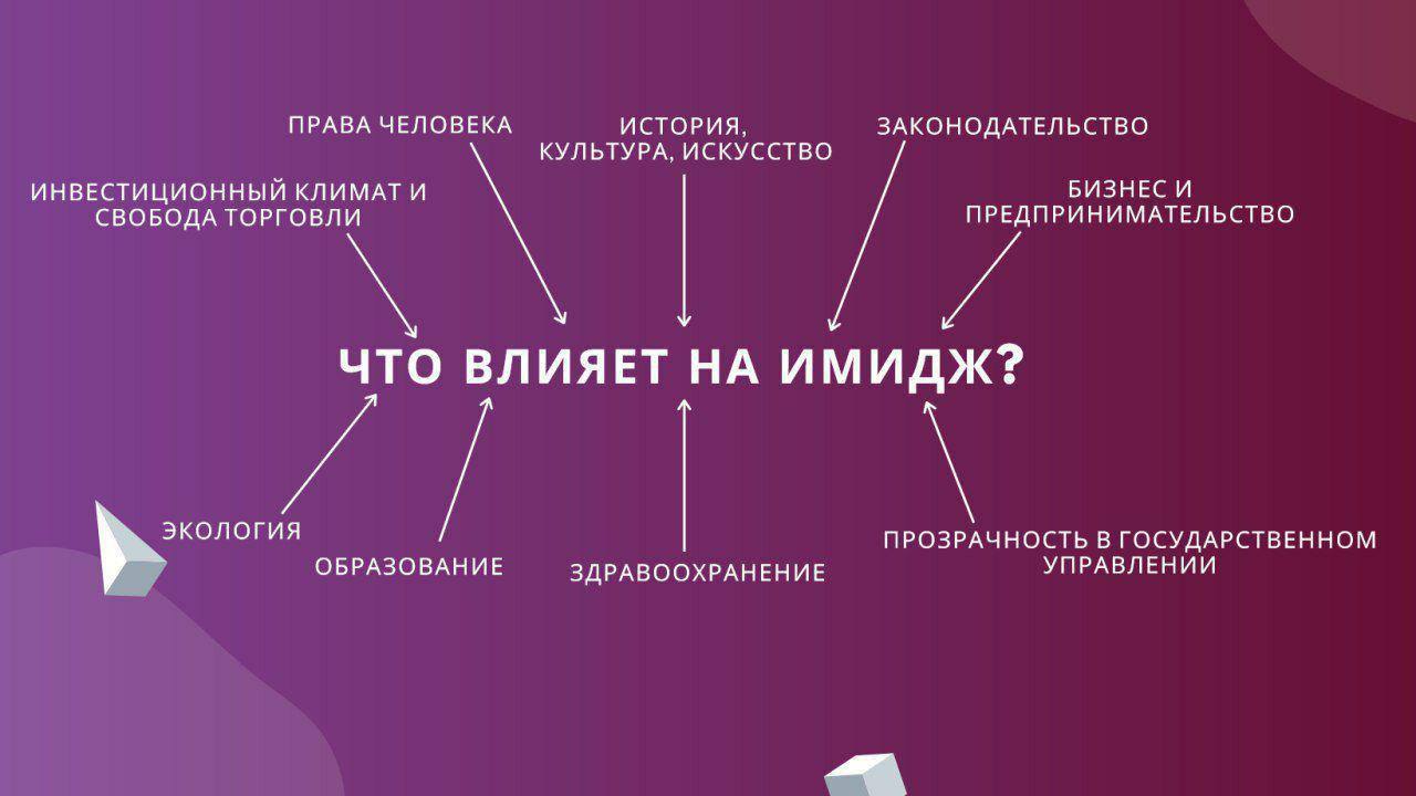Мне кажется, что картинка от АИМК немного смешала понятия бренда и имиджа. Потому что бренд страны - это нечто уже устоявшееся, сформированное за счёт прошлого. А имидж страны - это то, что она формирует в настоящее время. И этот самый имидж зависит, в первую очередь, от того, как государство относится к своим гражданам. Ещё он зависит от того, как оно относится к своей собственной истории. Очень положительное влияние на имидж оказывает отсутствие коррупции, непотизма и местничества. Ну, а на совершенно новые высоты выводит имидж умение страны не повторять однажды совершённые ошибки😈