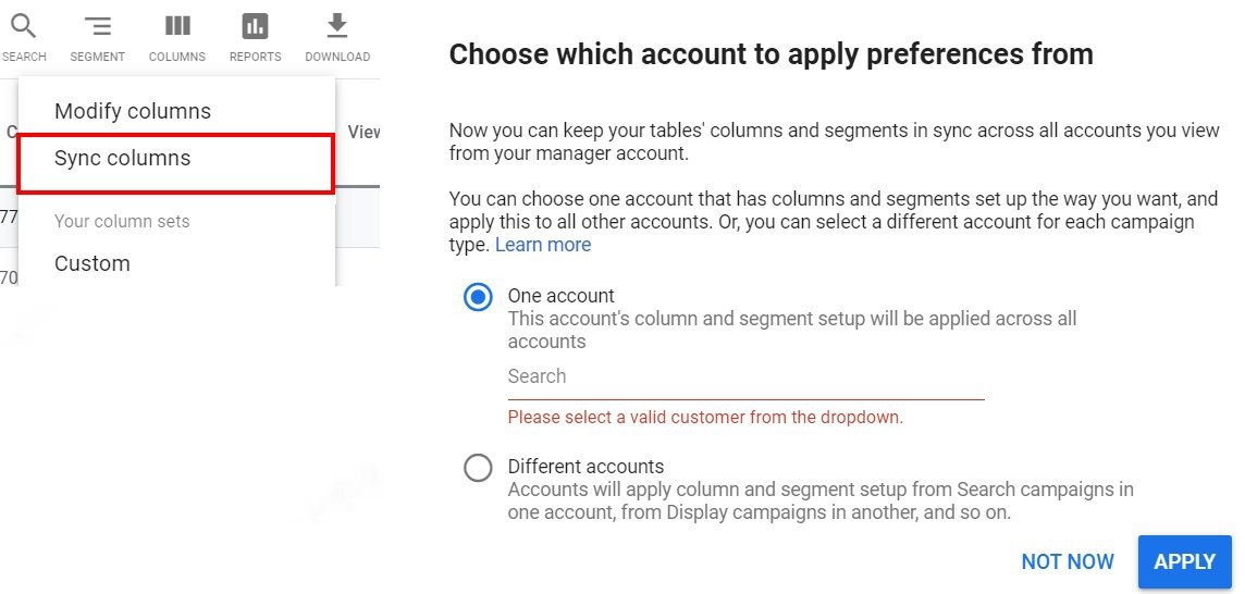 🙌 Нарешті Google додав можливість налаштувати кастомні колонки одразу для всіх акаунтів.