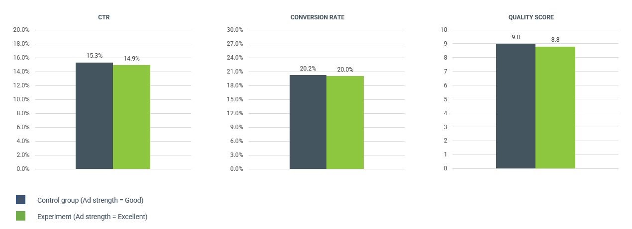Цікавий і добре описаний експеримент з Ad Strength адаптивних пошукових оголошень: