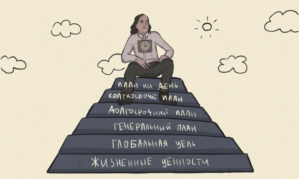 📌Его план достижения целей получил название «пирамида Франклина» и выглядит примерно так:
