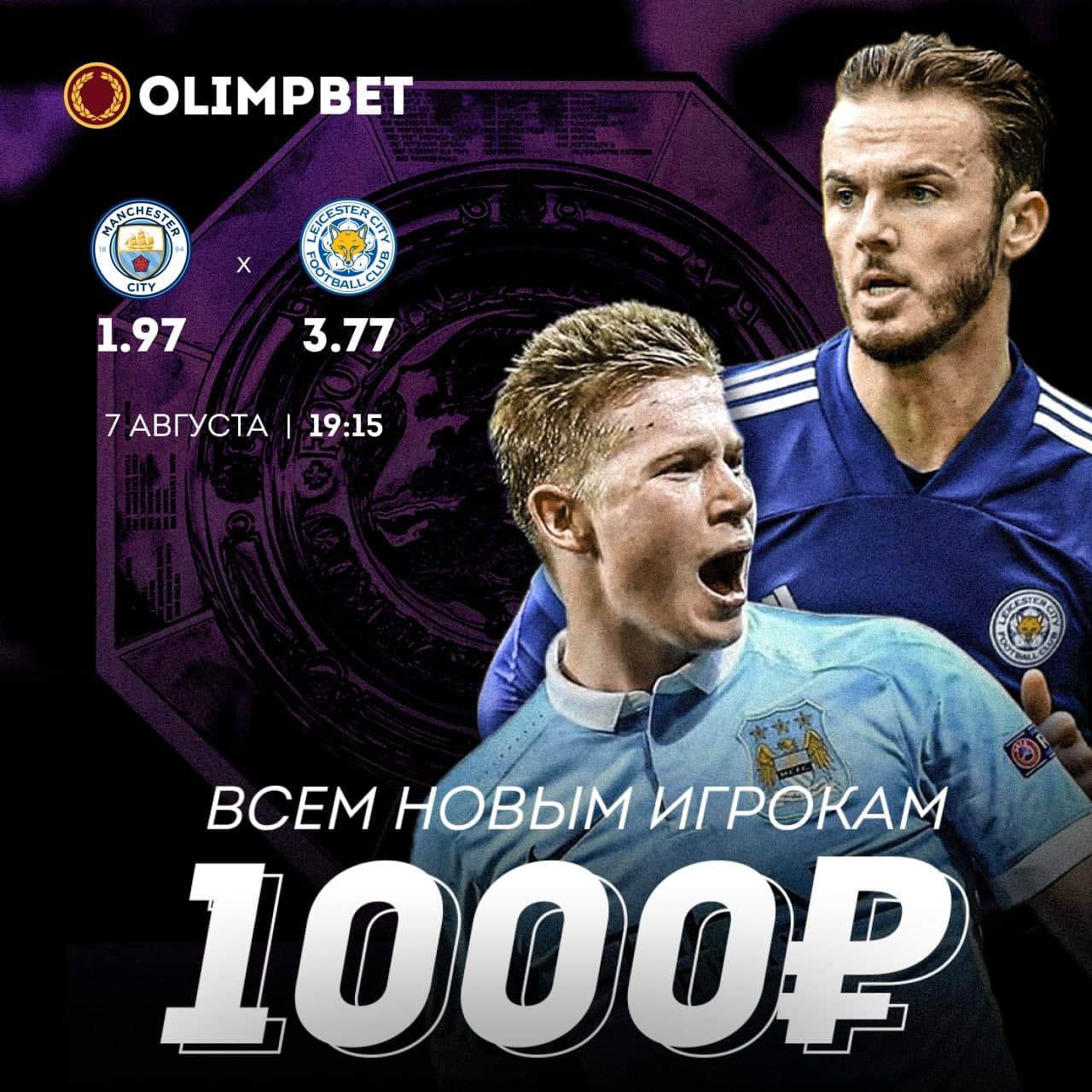 🔥 Букмекерская компания «Олимп» дарит гарантированный бонус 1000 рублей всем новым клиентам.