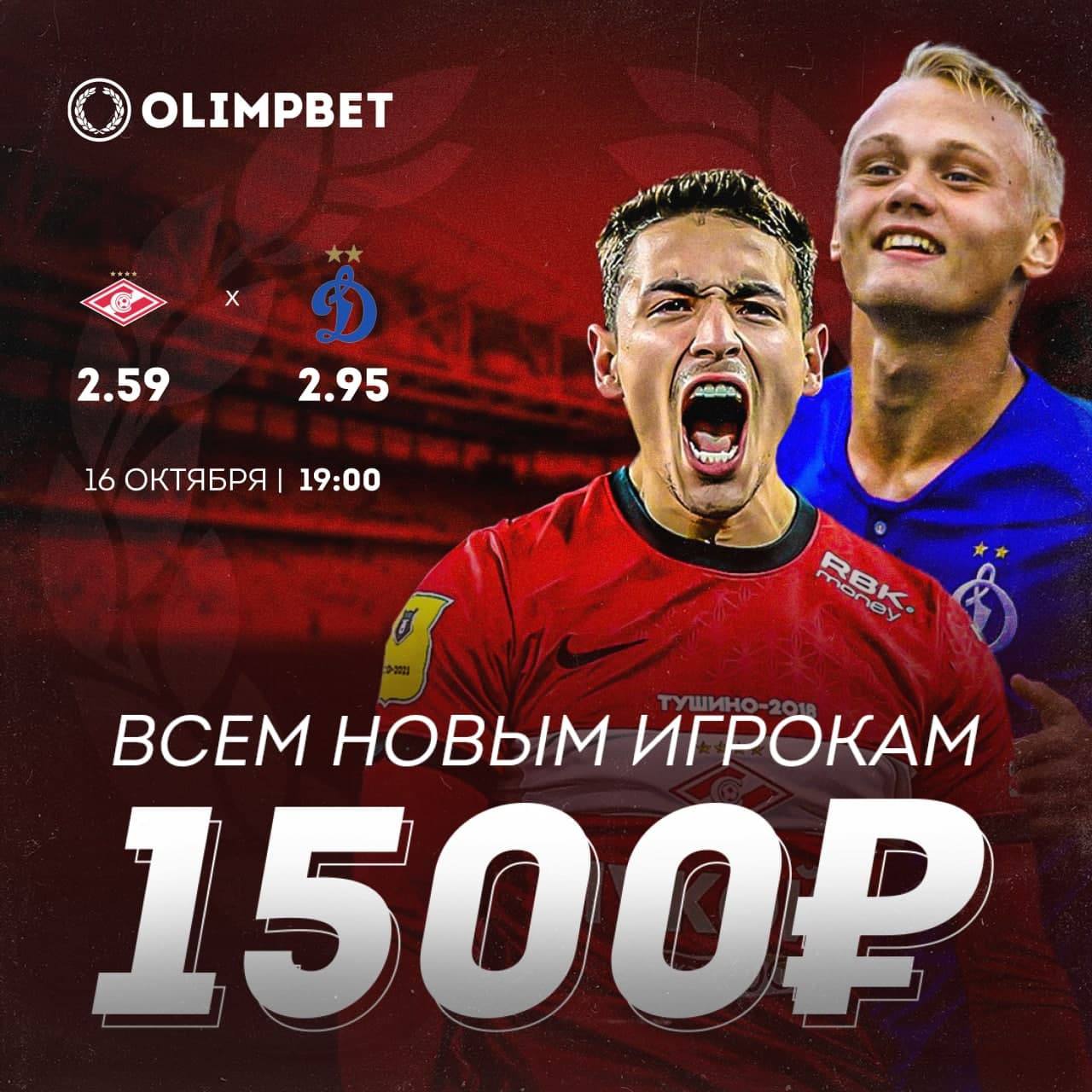 🙀 Букмекерская компания Olimpbet дарит гарантированный бонус 1500 рублей новым клиентам.