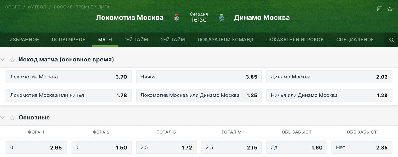 💪 Аналитики считают команду Сандро Шварца фаворитом матча и предлагают поставить на победу «Динамо» с коэффициентом 2.02. Взять «Локомотив» в линии на Paribet можно за 3.70. Коэффициент на то, что в матче будет забито не менее трех голов, — 1.72.