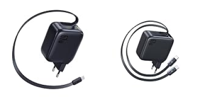 γ»Baseus Enercore Caricatore USB C 67W Con 2X Cavi Arrotolabile, Alimentatore GaN Con Porta USB-C, Caricatore Rapido Compatto Compatibile Con MacBook Pro, HP, Dell, iPad Pro, iPhone 16 Pro, Galaxy S25