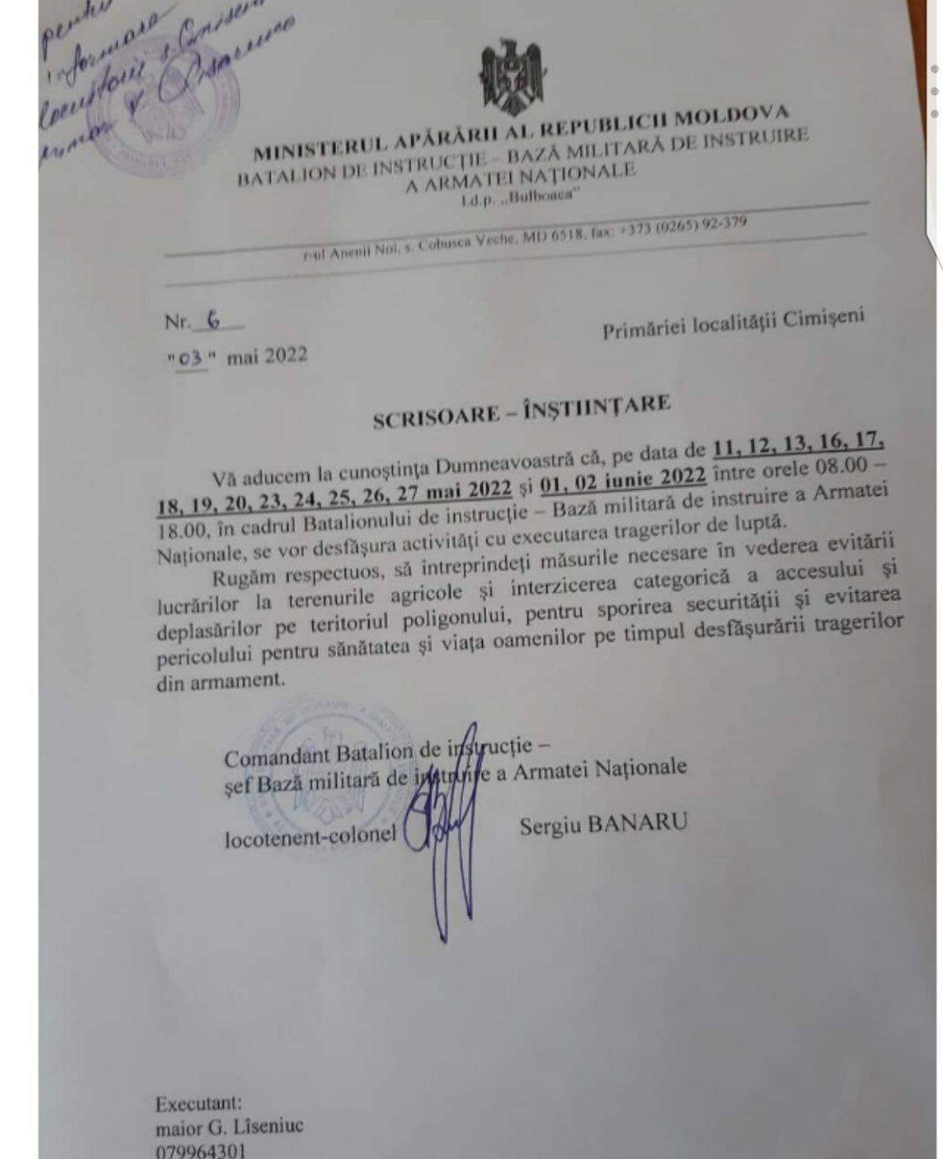 Министерство обороны Молдовы сообщило, что 11-27 мая и 1-2 июня планирует провести боевые стрельбы в районе населенного пункта Анений-Ной. Военный полигон, где пройдут боевые стрельбы, находится в 15 километрах от Приднестровья.