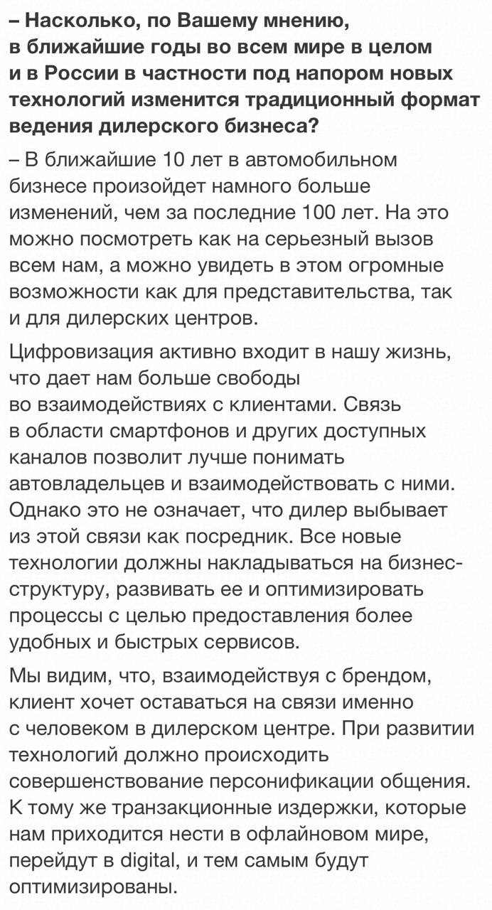 ⁃ «Послепродажное обслуживание и подержанные автомобили становятся все более важными сегментами в структуре дохода дилерского центра, и на них мы делаем упор»