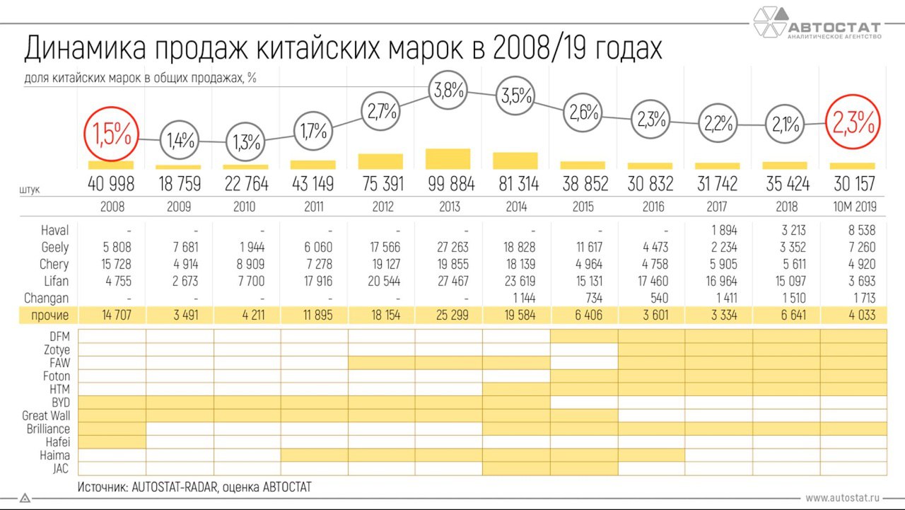 Pro стремительную китаезацию нашего автопарка - динамика продаж китайцев в 🇷🇺 за последние 12 лет.