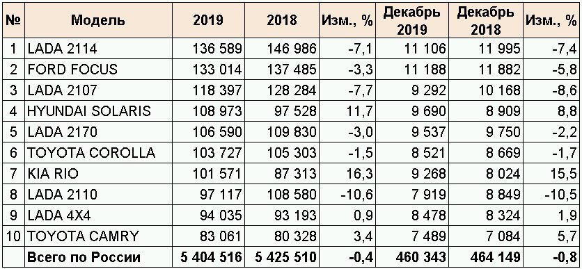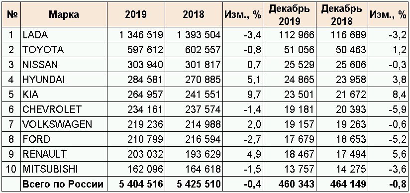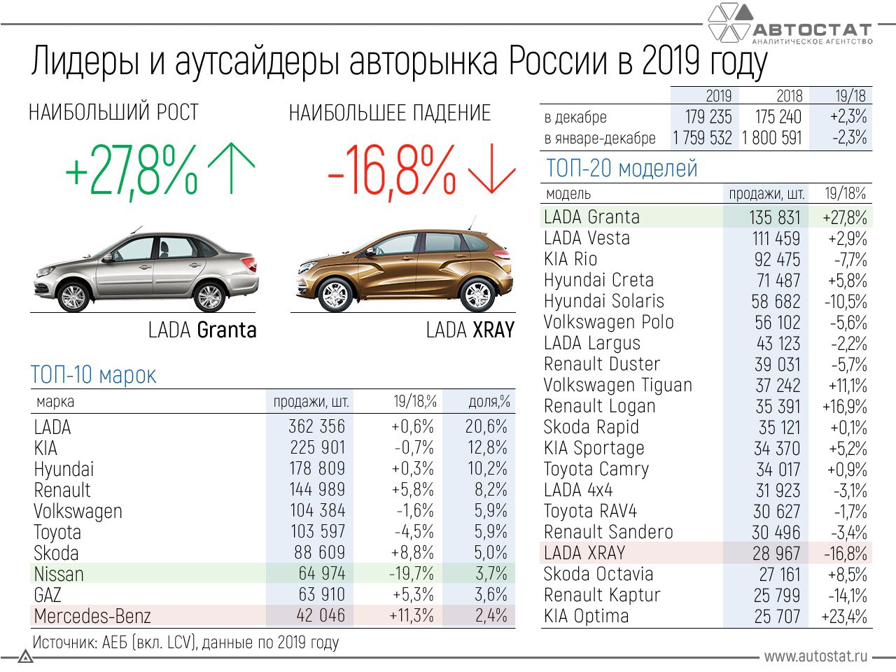 Pro продажи легковых а/м и легкого коммерческого транспорта в 🇷🇺 в декабре 2019 и за весь год: