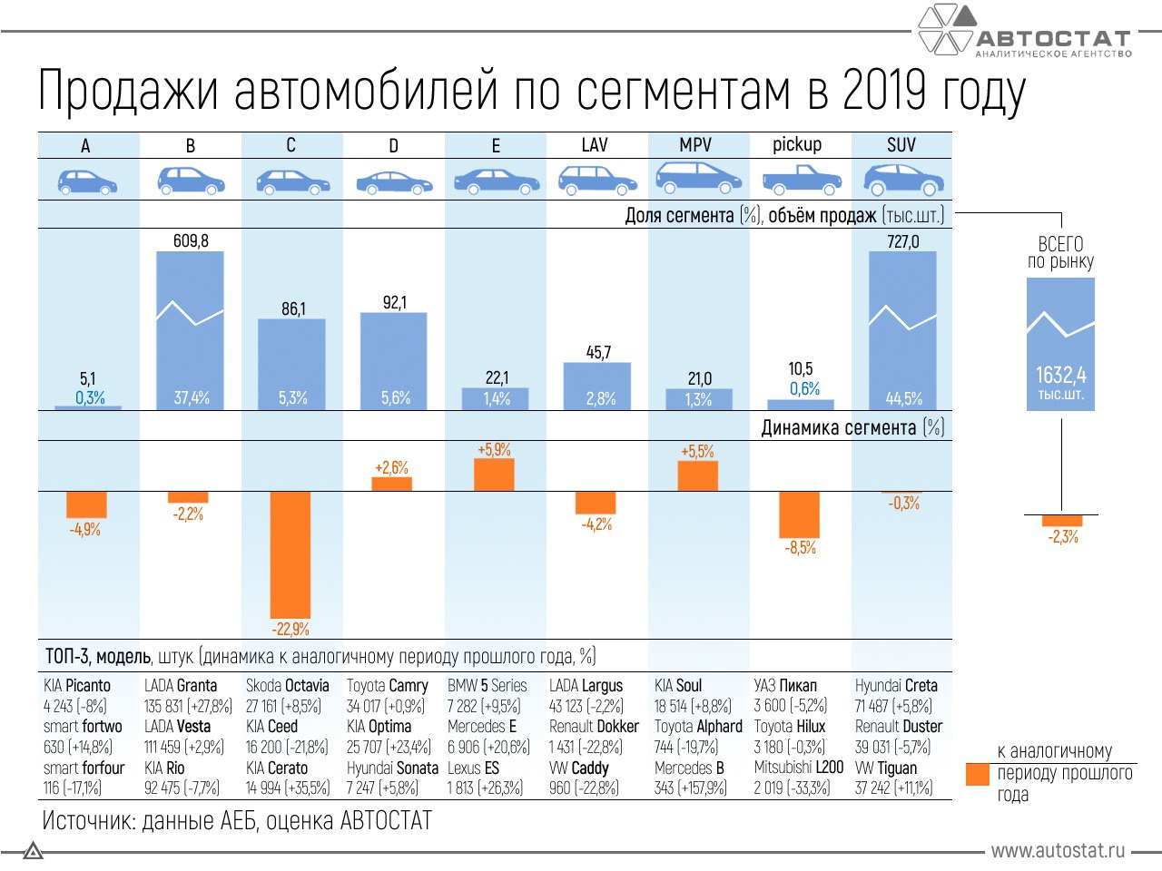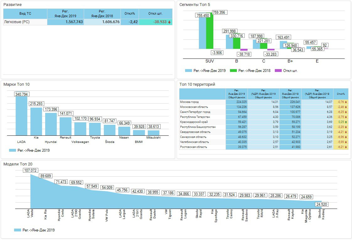 Pro новые легковые а/м - обзор рынка по итогам 2019 года по регистрациям от Автостат Инфо: