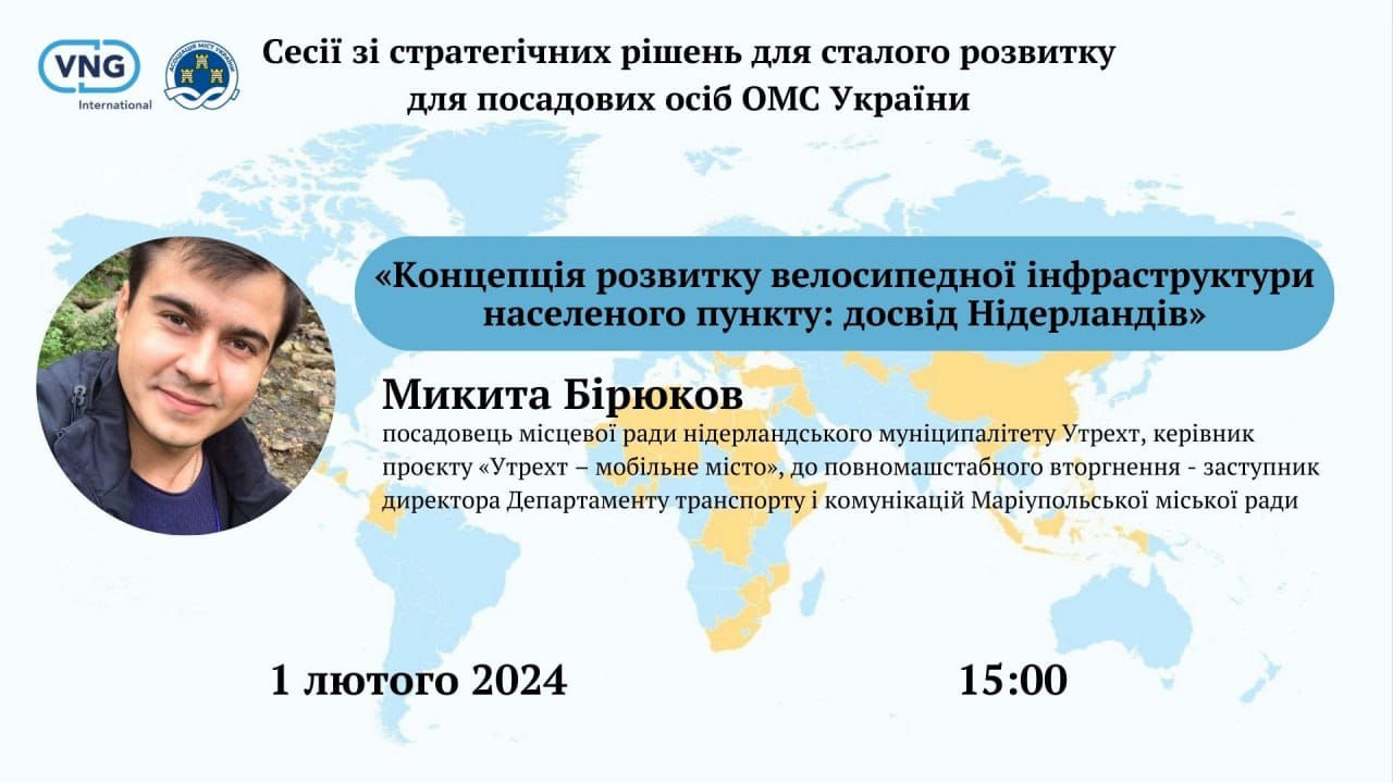 На зустрічі своїм досвідом поділиться Микита Бірюков – нині – посадовець місцевої ради нідерландського муніципалітету Утрехт🇳🇱, керівник проєкту «Утрехт – мобільне місто», а до повномасштабного вторгнення – заступник директора Департаменту транспорту і комунікацій Маріупольської міської ради. З Микитою ми мали нагоду співпрацювати ще в 2018, коли працювали над розробкою транспортної моделі Маріуполя - а 23 лютого 2022 року вони як раз мали презентацію-обговорення велоконцепції міста. Тепер він набуває новий досвід в Нідерландах, і, сподіваємось, матиме нагоду його застосувати і для відновлення рідного краю.