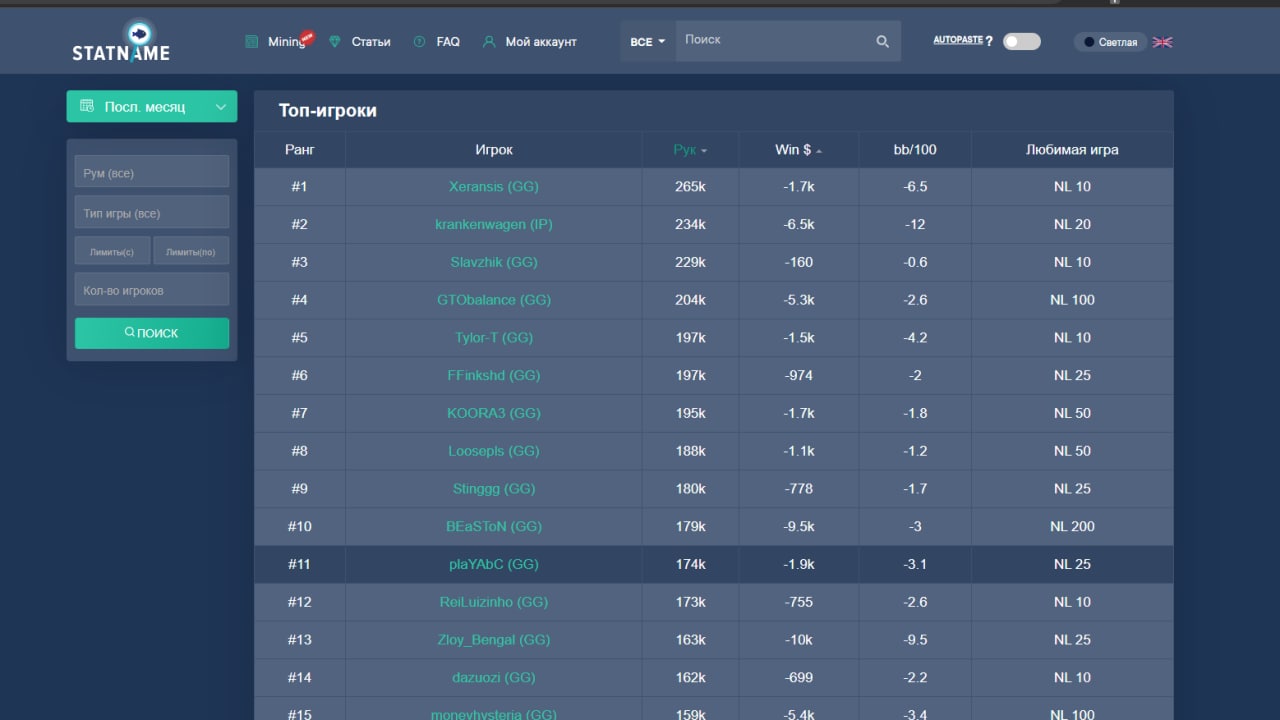 STATNAME — cамый большой сайт статистики на игроков в покер Holdem и Omaha. Работаем с румами iPoker, 888, GG, PokerBros и CHICO. Наша база данных хранит…