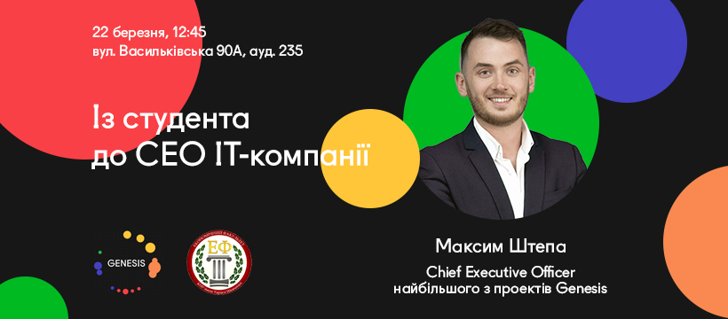 Спікер – Максим Штепа, один з партнерів Genesis та виконавчий директор найбільшого з проектів компанії, розповість про свій шлях з фінансів в IT, адже сам пропрацював 5 років в інвестбутиках і корпоративних фінансах.