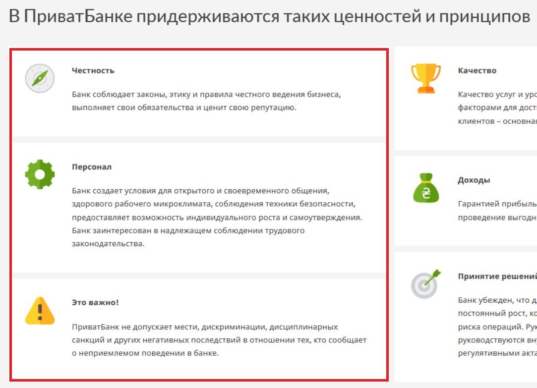 На картинке выше приведены принципы с сайта ПриватБанка. Насколько по вашему они соответствуют действительности?