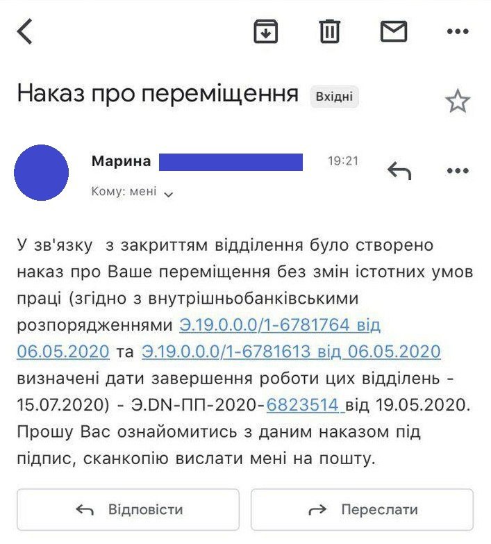На этой неделе сотрудники двух закрываемых отделений КиевСити, против закрытия которых открыто выступило более 300 сотрудников филиала (более 80%), стали получать уведомления о переводе в связи с закрытием их отделений.
