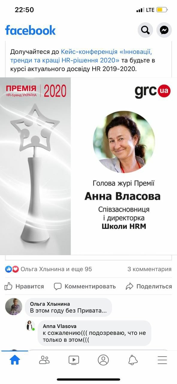 Но, несмотря на комментарий Анны Власовой - Главы жюри «Премии HR-бренд Украина 2020», вопрос ПриватБанка будет в повестке данного мероприятия. Наш профсоюз ознакомит участников с состоянием корпоративного управления в банке и о методах борьбы Редько-HR банка с неугодными сотрудниками.