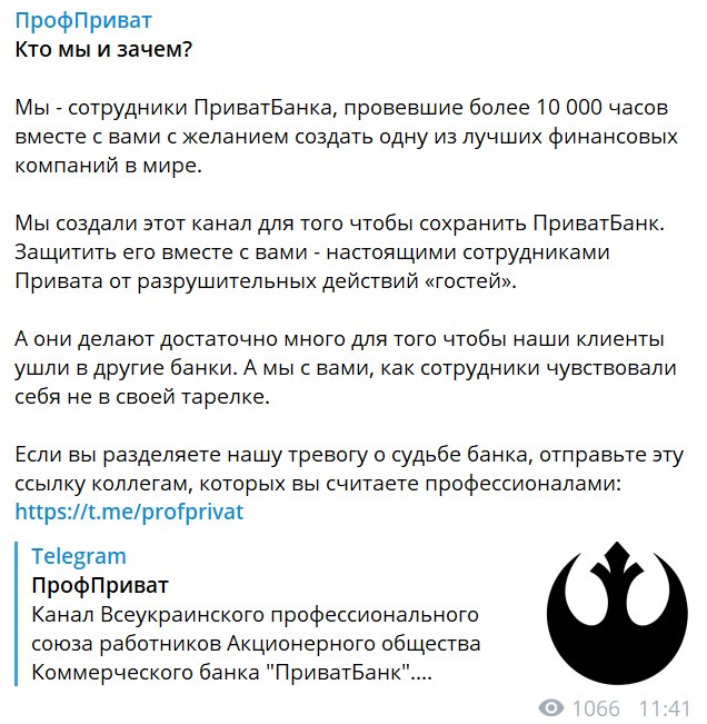 “Мы создали этот канал для того чтобы сохранить ПриватБанк.