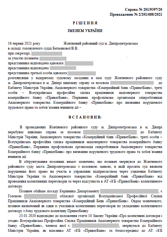 К сожалению, такого договора в ПриватБанке нету. И если до 2019-го года отсутствие колдоговора можно было объяснять отсутствием в банке профсоюзов, то, начиная с лета 2019-го года, это обусловлено только незаконным поведением правления и собственника.