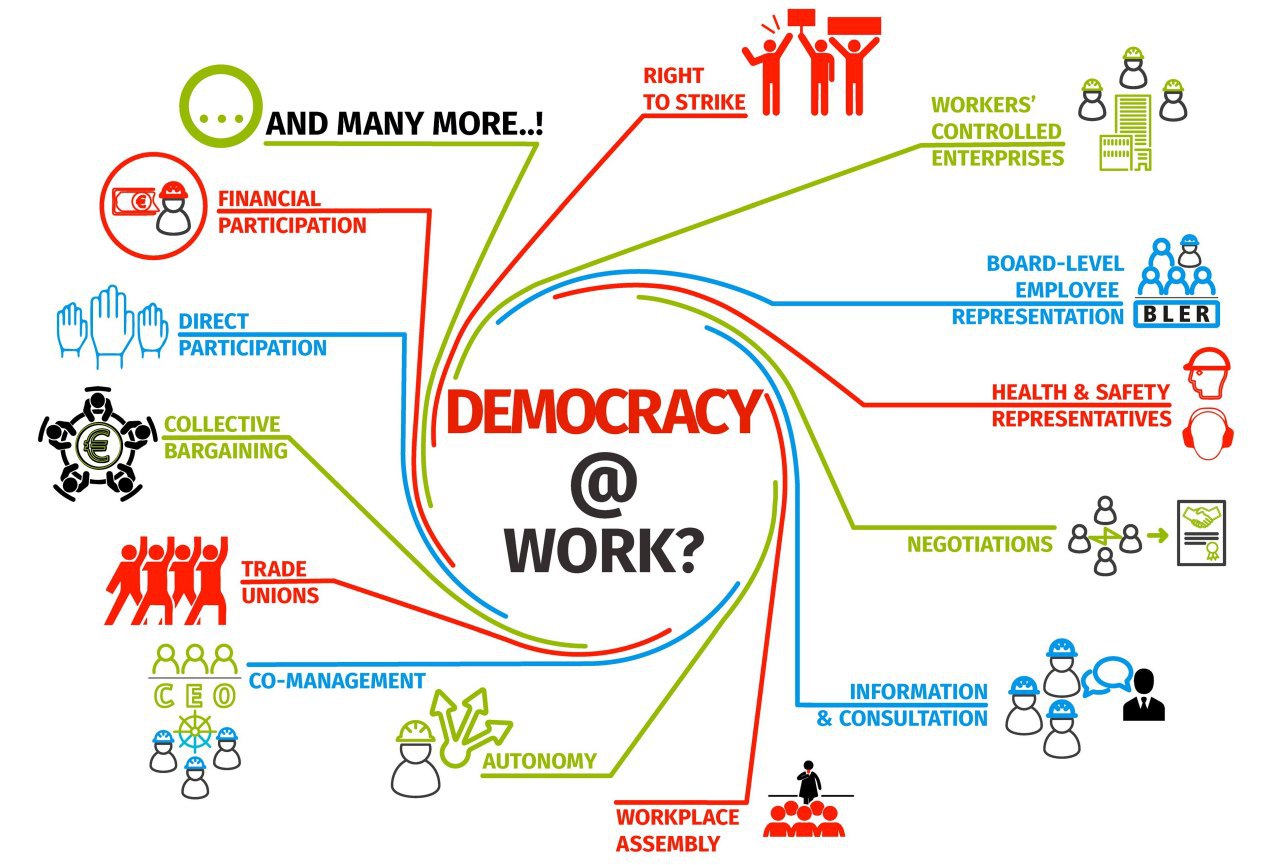 Демократия на работе способствует строгом соблюдением мер по защите здоровья и безопасности (вы не должны умолять их о надбавках в карантин).