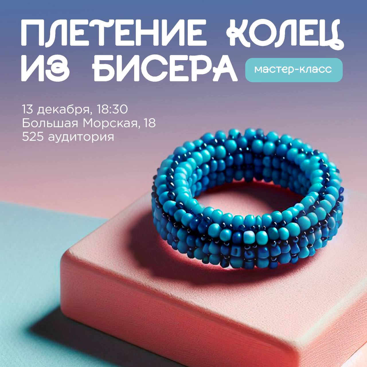 🌟 Дорогие студенты, мы приглашаем вас на увлекательный мастер-класс по плетению браслетов из бисера. Это отличная возможность научиться создавать уникальные украшения своими руками и заняться творчеством в кругу друзей!