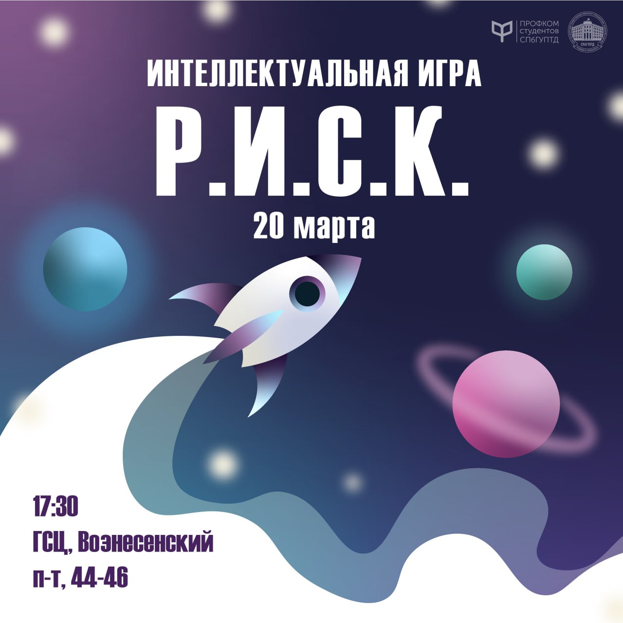 Уже 20 марта в Городском студенческом центре пройдет интеллектуальная игра "Р.И.С.К.", которая будет посвящена космосу!