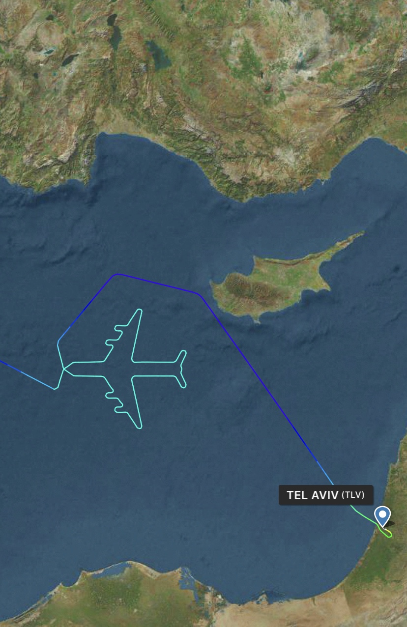 Заключительным рейсом стал маршрут из Рима в Тель-Авив (LY1747). Неподалеку от Кипра экипаж в воздухе «нарисовал» очертание самолета.