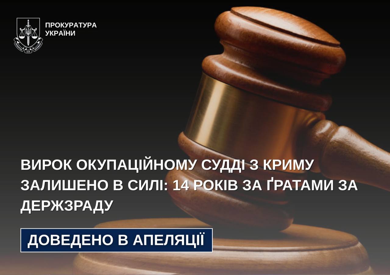 ⚡Вирок окупаційному судді з Криму залишено в силі: 14 років за ґратами за держзраду