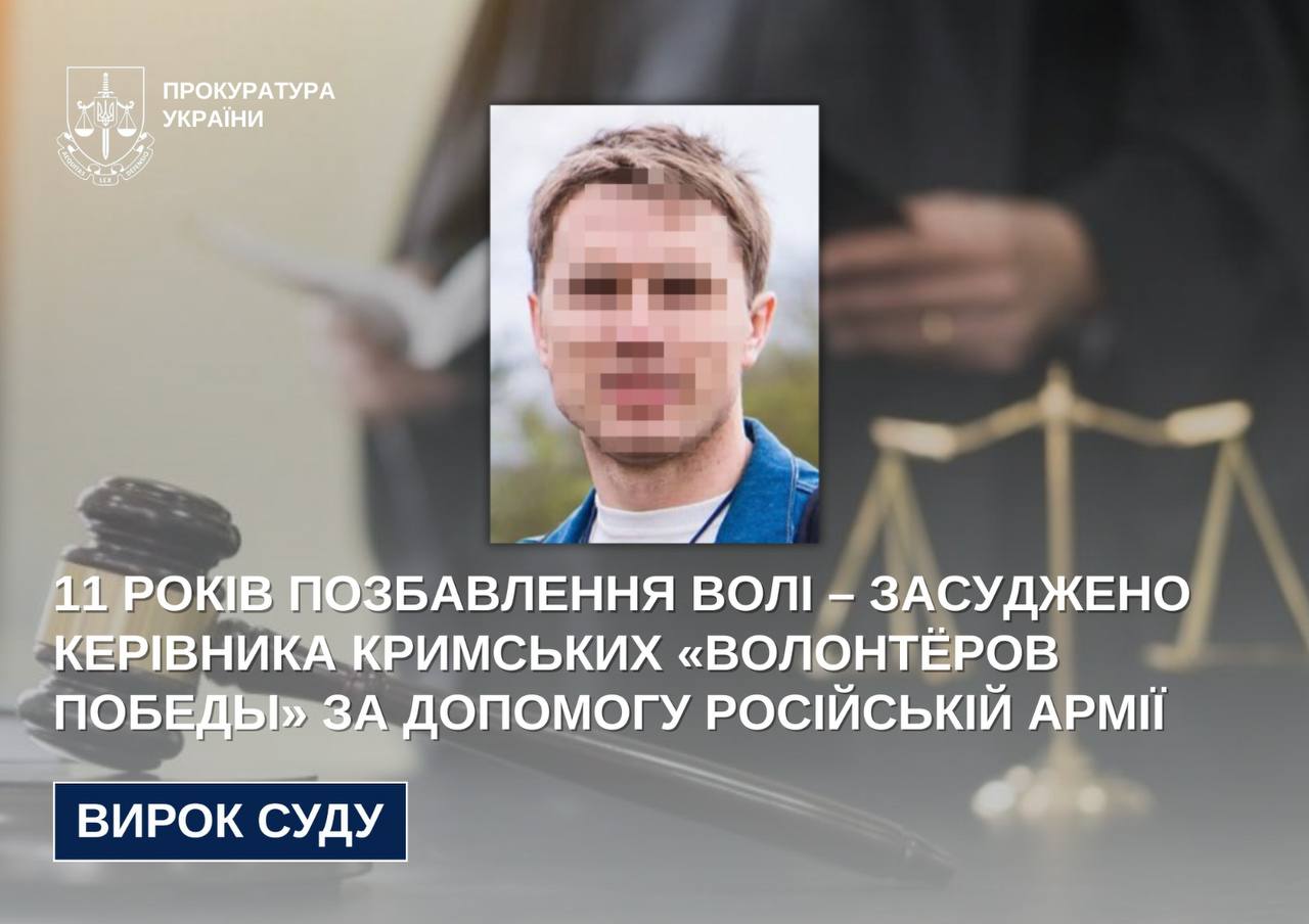 ⚡11 років позбавлення волі – засуджено керівника кримських «волонтёров победы» за допомогу російській армії