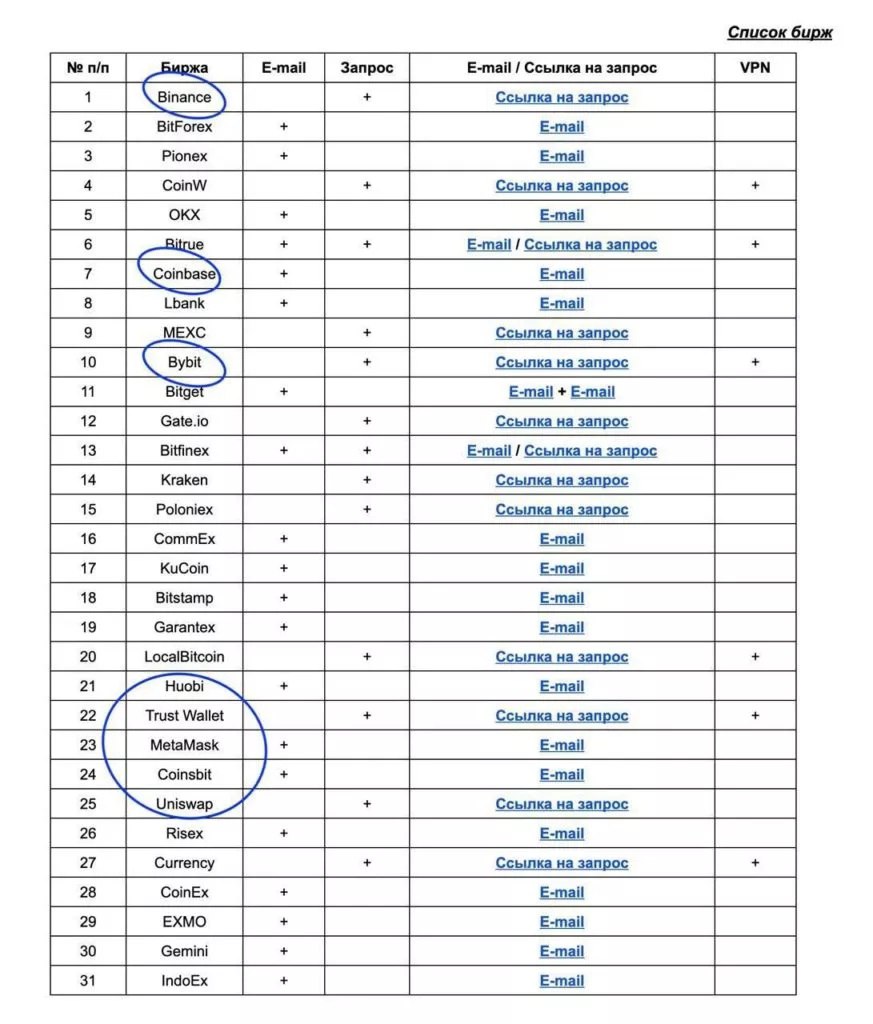 Π‘ΠΎΡΡΡΠ΄Π½ΠΈΡΠ°ΡΡ Ρ ΡΠΎΡΡΠΈΠΉΡΠΊΠΈΠΌΠΈ ΡΠΏΡΠ°Π²Π»ΡΡΡΠΈΠΌΠΈ Π³ΠΎΡΠΎΠ²Ρ Π΄ΡΠ±Π°ΠΉΡΠΊΠ°Ρ Π±ΠΈΡΠΆΠ° Bybit, Π΅Π²ΡΠΎΠΏΠ΅ΠΉΡΠΊΠ°Ρ Bitstamp, ΡΠΈΠ½Π³Π°ΠΏΡΡΡΠΊΠ°Ρ Bitrue, Π°ΠΌΠ΅ΡΠΈΠΊΠ°Π½ΡΠΊΠ°Ρ Gate ΠΈ OKX, Π·Π°ΡΠ΅Π³ΠΈΡΡΡΠΈΡΠΎΠ²Π°Π½Π½Π°Ρ Π½Π° Π‘Π΅ΠΉΡΠ΅Π»ΡΡΠΊΠΈΡ ΠΎΡΡΡΠΎΠ²Π°Ρ .