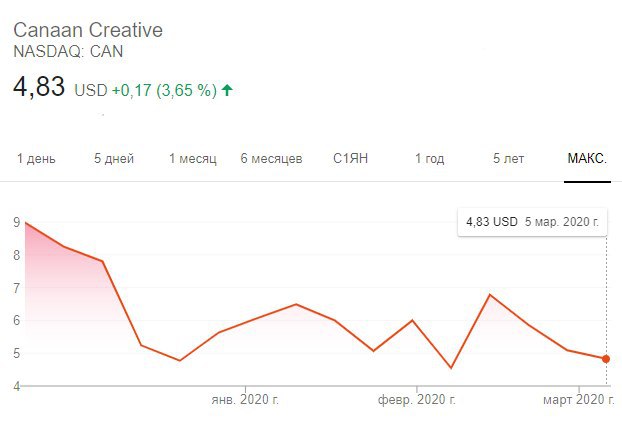 Сейчас акции Canaan стоят меньше $5 при цене IPO в $9.