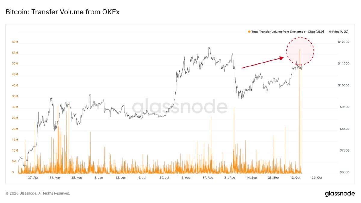 В то же время, по подсчетам Glassnode, в течение двух дней перед инцидентом с OKEx было выведено около 10 000 биткоинов двумя траншами.
