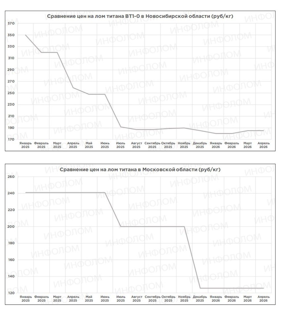 Лом титана в России отражают те же тенденции – если нет спроса, а рубль укрепляется, то цены падают, что мы и наблюдаем.
