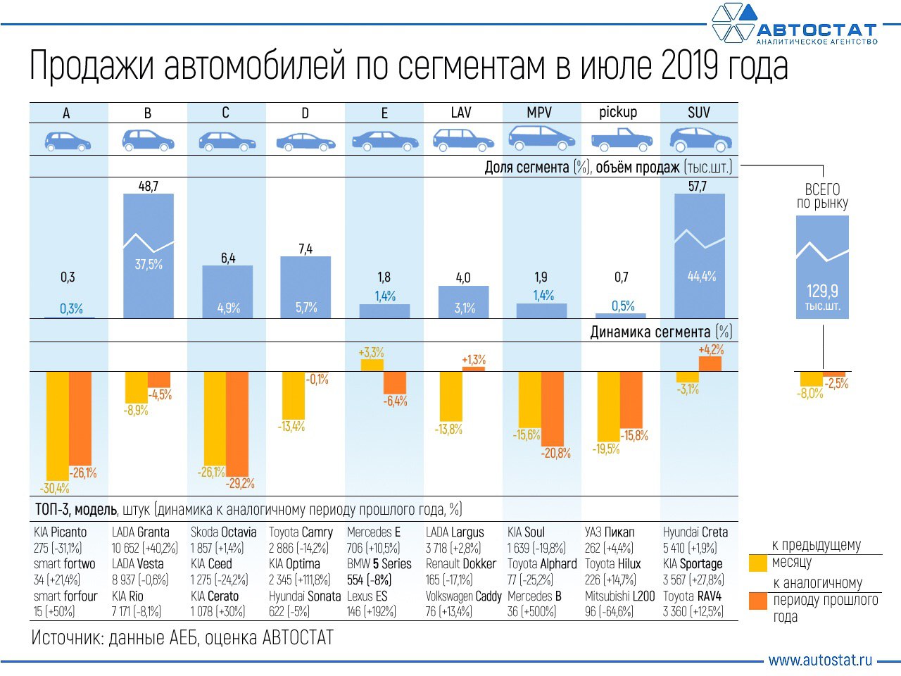 Пока закрываем активно месяц и вспоминаем как продавались новые а/м по сегментам в июле 2019.