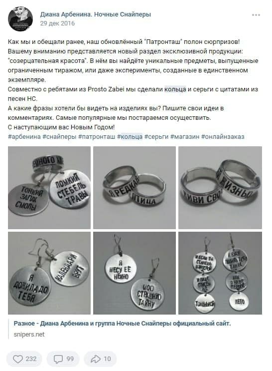 Возможно Диляра когда-то давно неосторожно где-то на общем концерте поделилась такой идеей создания колец, а Вера могла ее быстрее реализовать. Но это только мои предположения. Даже если было все не так, не вижу ничего страшного, что у группы стали выпускать вещи со своими мерчами - в условиях пандемии, когда на концертах особо не заработаешь это пожалуй неплохая идея заработка.