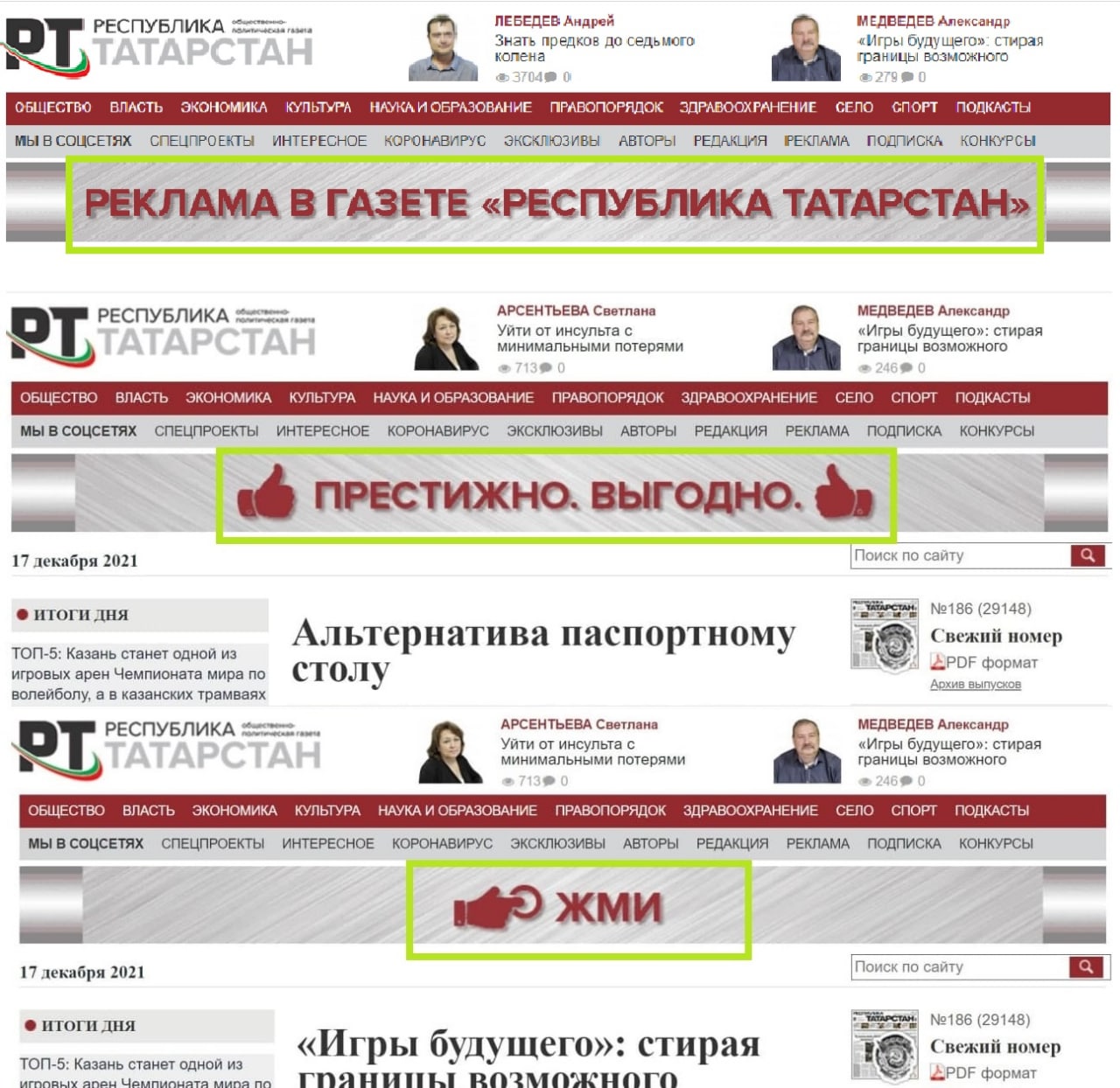 Надежный как автомат Калашникова кейс по продажам рекламных площадей от рекламщиков газеты «Республика Татарстан» — «Престижно. Выгодно. Жми». Можно было бы еще добавить «Дорого. Богато» для полноты картины продающей визуалочки.