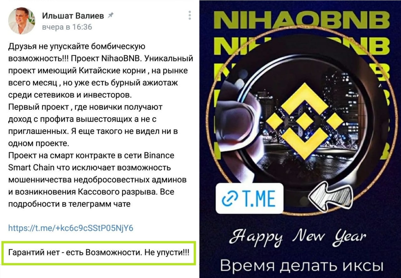 Певец Ильшат Валиев рекламирует какую-то очередную крипто-вундервафлю, где можно заработать много денег. Гарантий, естественно, никаких, о чем певец предупреждает.