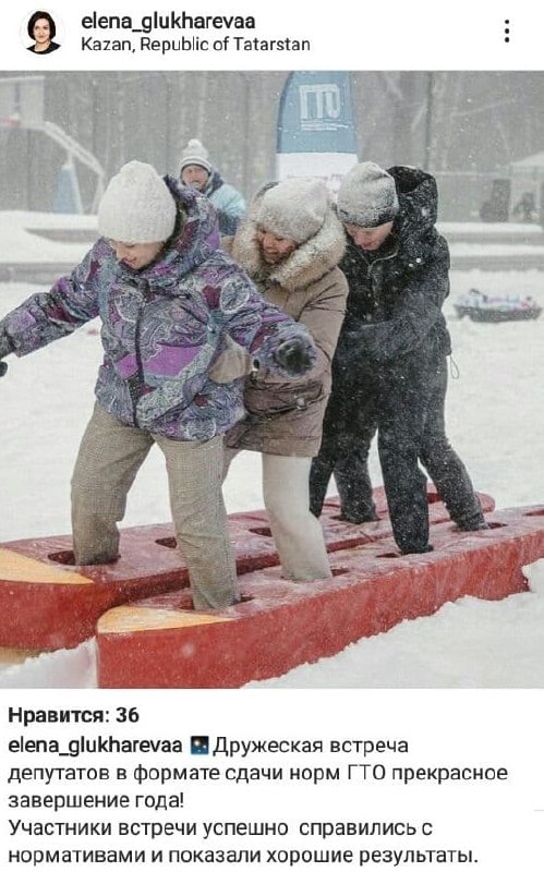 Кажется, депутатэсса Казгордумы Елена Глухарева перепутала зачет по нормам ГТО с веселыми стартами на корпоративе.