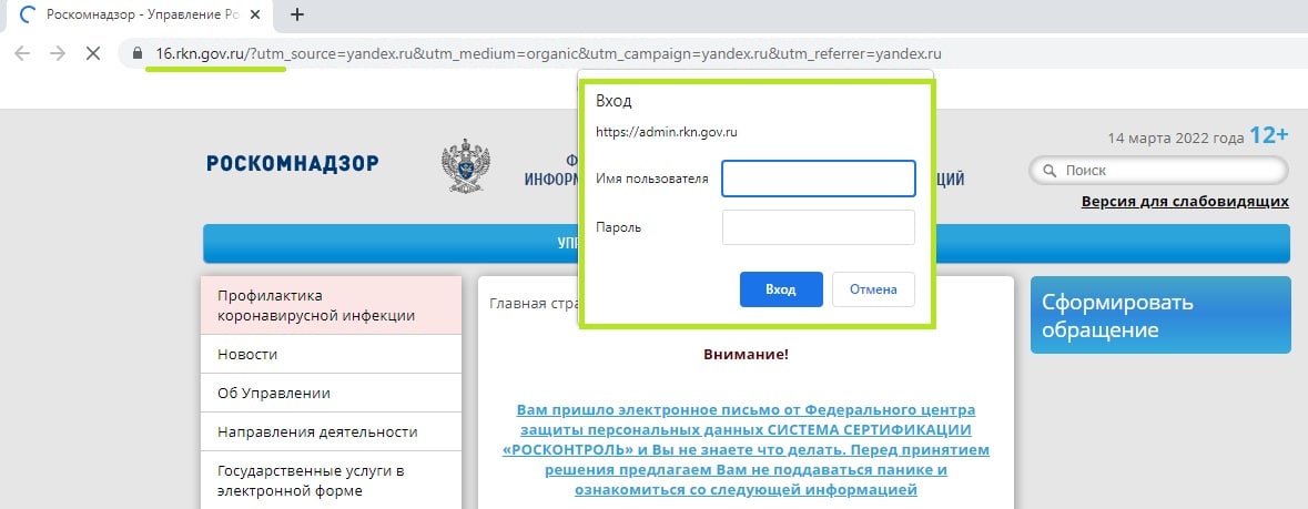 Как интересно: при переходе на сайт татарстанского управления Роскомнадзора автоматически предлагается войти к ним в админку.