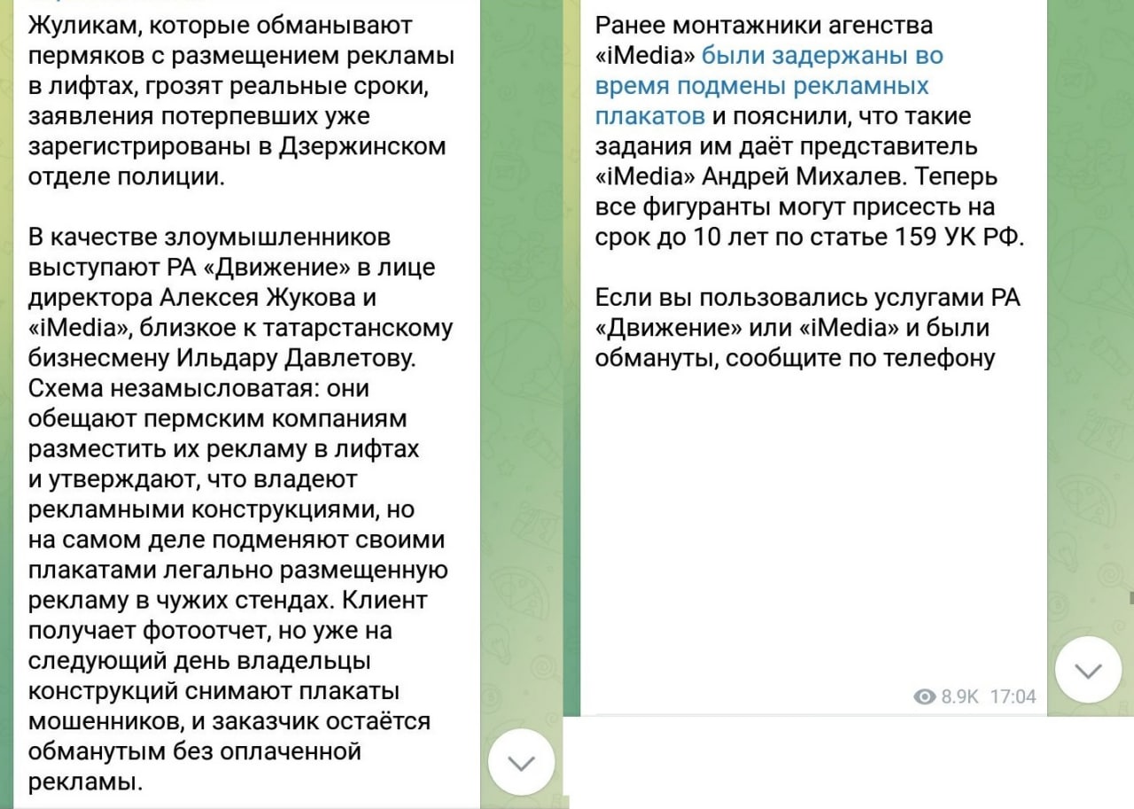 Пермские рекламщики снова пишут на #почта об истории с казанской компанией Imedia татарстанского бизнесмена Ильдара Давлетова, который наворотил дел в уральском городе. Оказывается, Imedia там настолько всех достала, что на нее написали заявление в правоохранительные органы.
