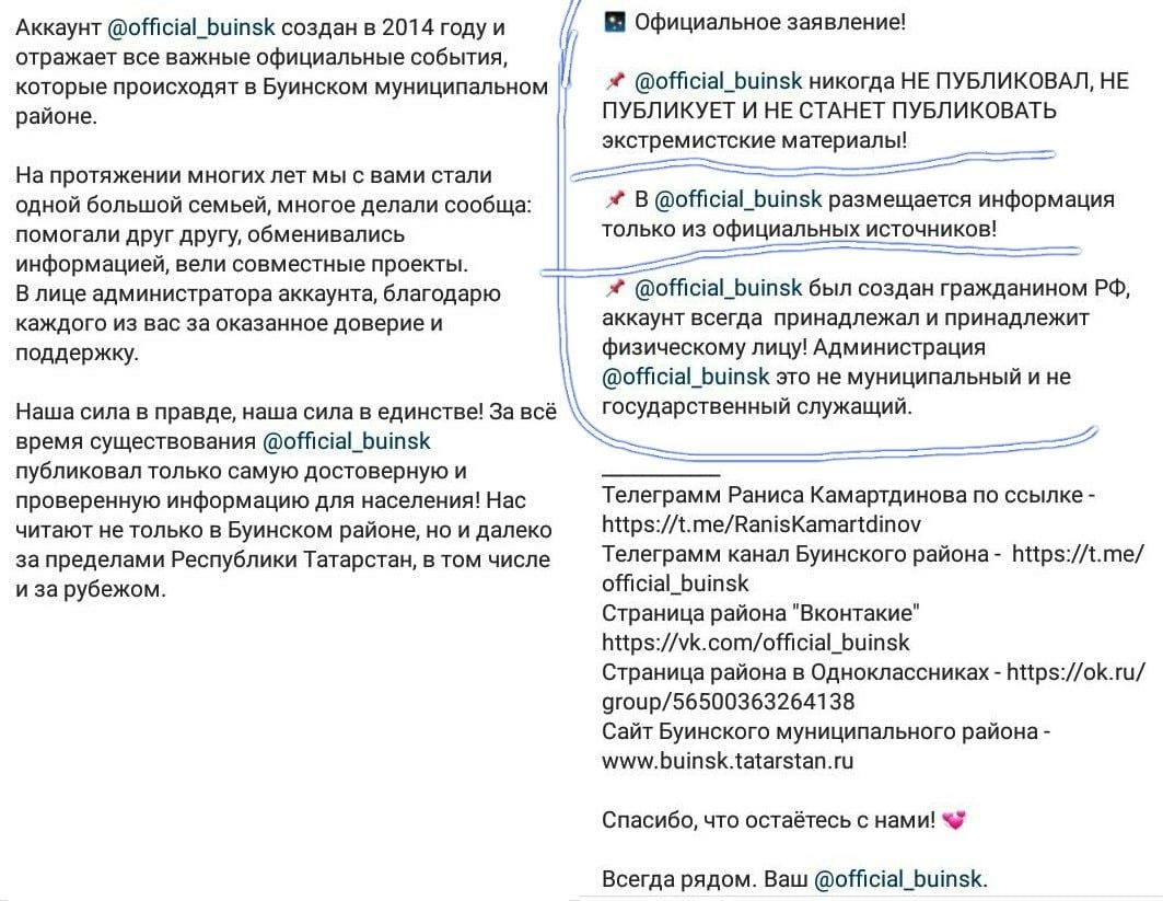 Пресс служба Буинского района классно подстраховалась после признания инстаграма экстремистским)) Я не я и лошадь не моя, и вообще это не мы, это частное лицо ведет)
