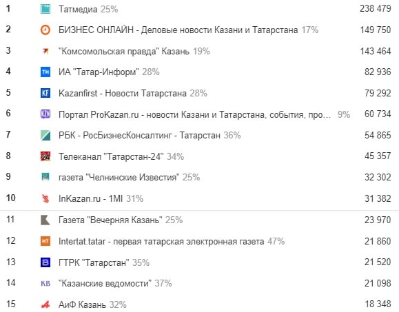 Трио лидеров по-прежнему стабильное — это объединенный счетчик ресурсов «Татмедиа», «Бизнес-онлайн» и «Комсомольская правда Казань».