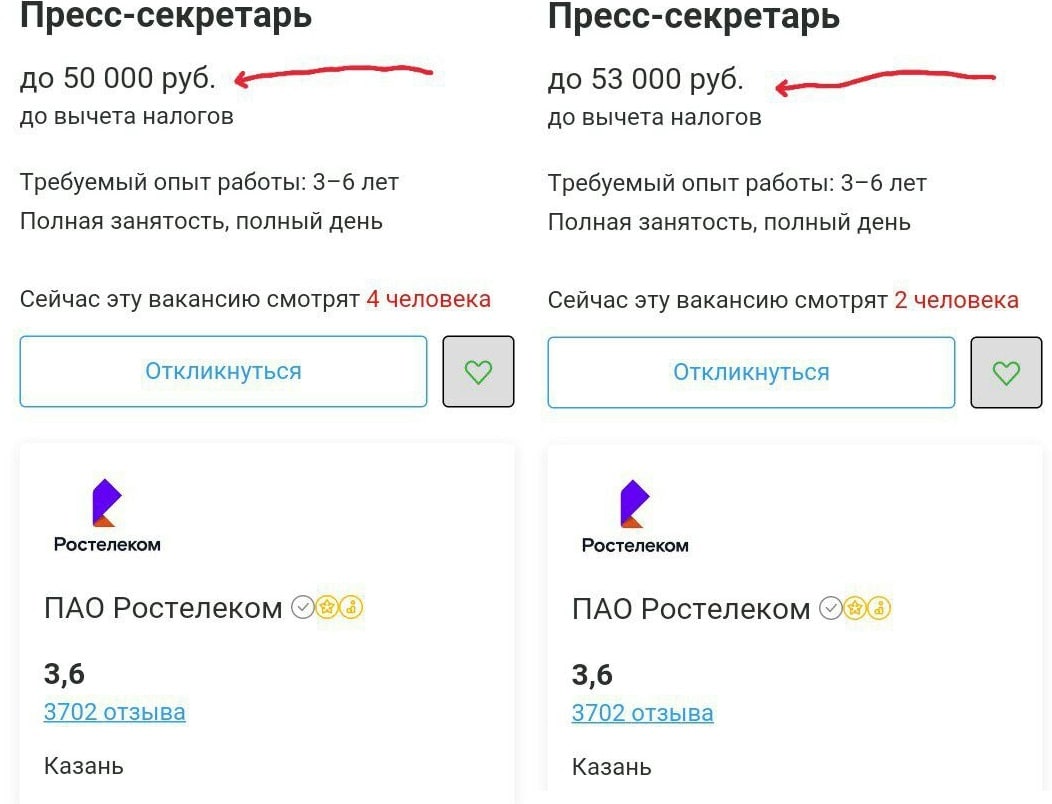 Лови прикол как Ростелеком ищет пресс-секретаря. Сначала разместили вакансию на 50 тысяч рублей 10 августа.