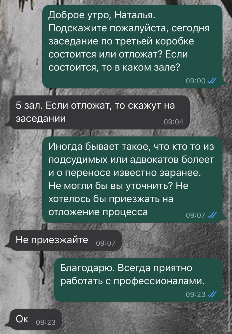 «С такой зарплатой, как у пресс-секретаря суда, это верх обходительности. Понятно, что в идеальном мире должно быть иначе: взялся за гуж — не говори что не дюж, и т.п. Но где наш мир, а где идеал».