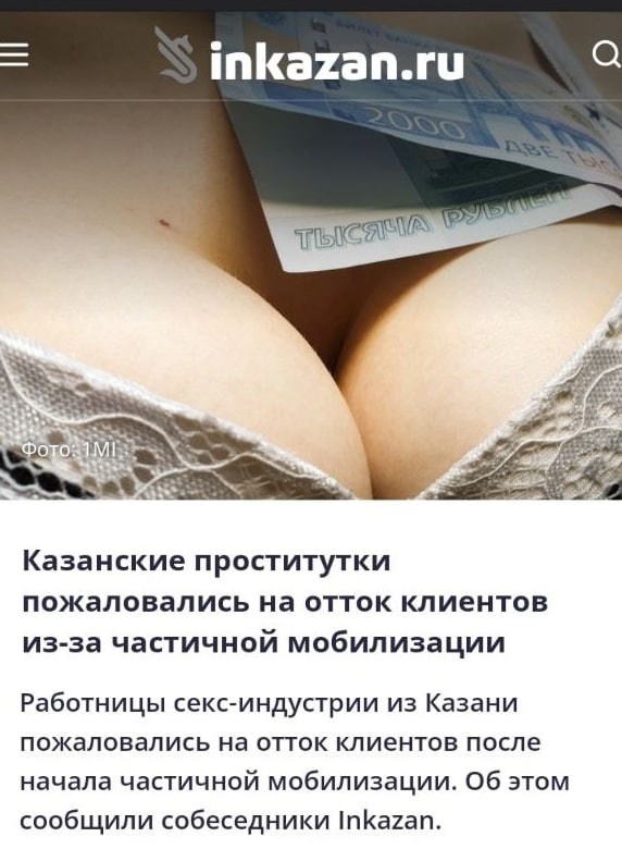 Испытываю гордость за Inkazan — единственное местное СМИ, которое имеет надежных инсайдеров в казанских проститутошных и регулярно поставляет оттуда свежие новости.