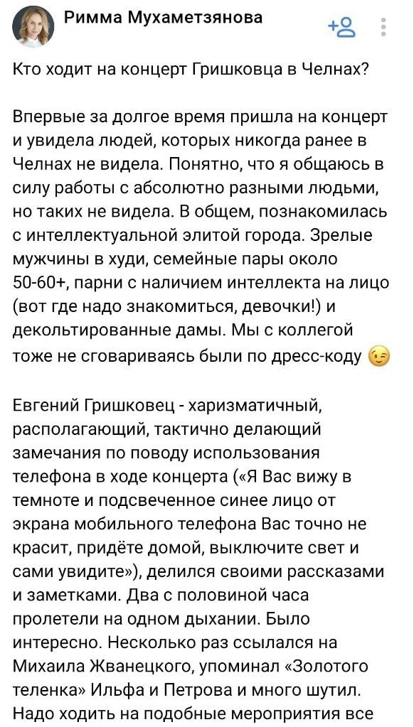 Римма Равилевна как бы намекает, что по жизни приходится общаться совсем с другой публикой.